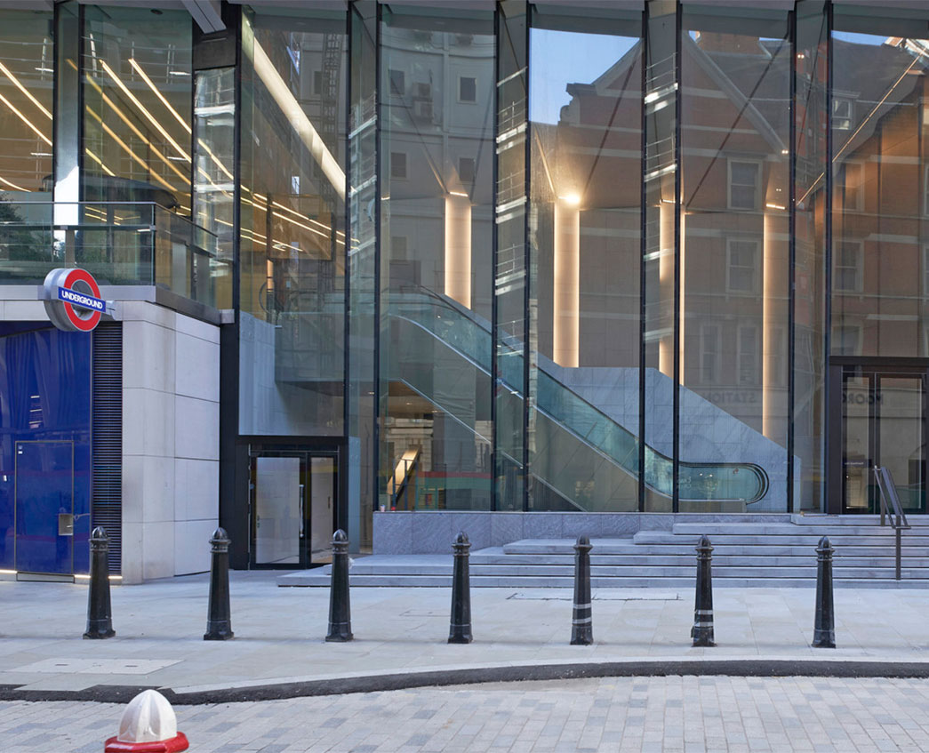 21 Moorfields ist eine technische Meisterleistung, die direkt über komplexen U-Bahn-Linien unter Verwendung einer Stahlbrückenkonstruktion errichtet wurde.