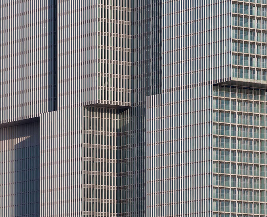 De Rotterdam – conceived as a ‘vertical city’ and completed in 2013 – is a multifunctional skyscraper on the banks of the De Maas River in the major port city of Rotterdam.