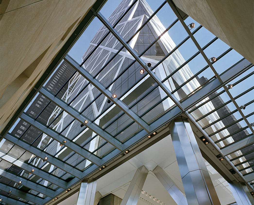 Situated on Eighth Avenue, the new tower emerges effortlessly from the historical 1920s building, connected by a skylight with a flat, horizontal ceiling – giving the impression that the tower is floating. This skirt of glazing allows natural light to flood inside and illuminate the atrium. Hearst Tower was the first ‘green’ office building in New York City and was winner of CTBUH Best Tall Sustainable Building Award in 2007.