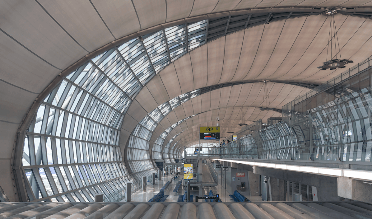 Suvarnabhumi Airport in Bangkok, opened in 2006, is one of the largest by area in the world, with over 500,000 sqm of enclosed space.