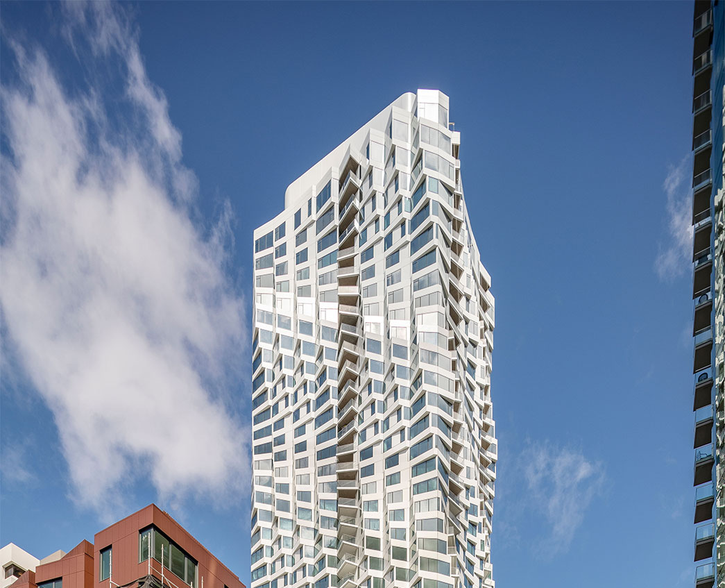 I colleghi di Permasteelisa in Nord America e in Italia hanno collaborato alla creazione e all'installazione della facciata, e l'edificio è una testimonianza della forza del lavoro di squadra internazionale del Gruppo. Insieme a una serie di caratteristiche sostenibili, tra cui un innovativo sistema di raffreddamento, tetti verdi e infissi ad alta efficienza, la facciata ad alte prestazioni ha aiutato il progetto a ottenere la certificazione LEED Gold.