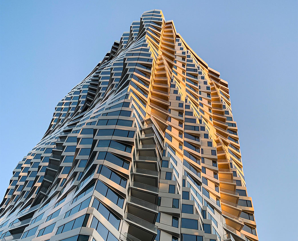 18.600 mq di facciata - 8.239 elementi di facciata continua unitarizzati, 910 elementi di facciata 3D, 5.978 elementi di tamponamento e visivi, 1.351 elementi di testa e corrimano per balconi