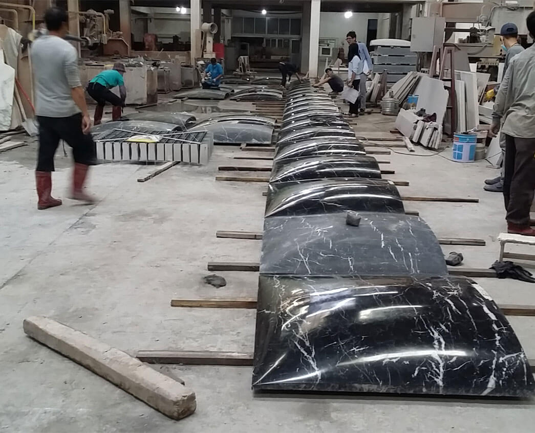De gitzwarte stenen gevel van het gebouw vormt een aanvulling op het verbluffende interieur, dat een contrast biedt tussen warm, donker hout en ijskoude witte steen als aanvulling op een kleurrijke kledinglijn.