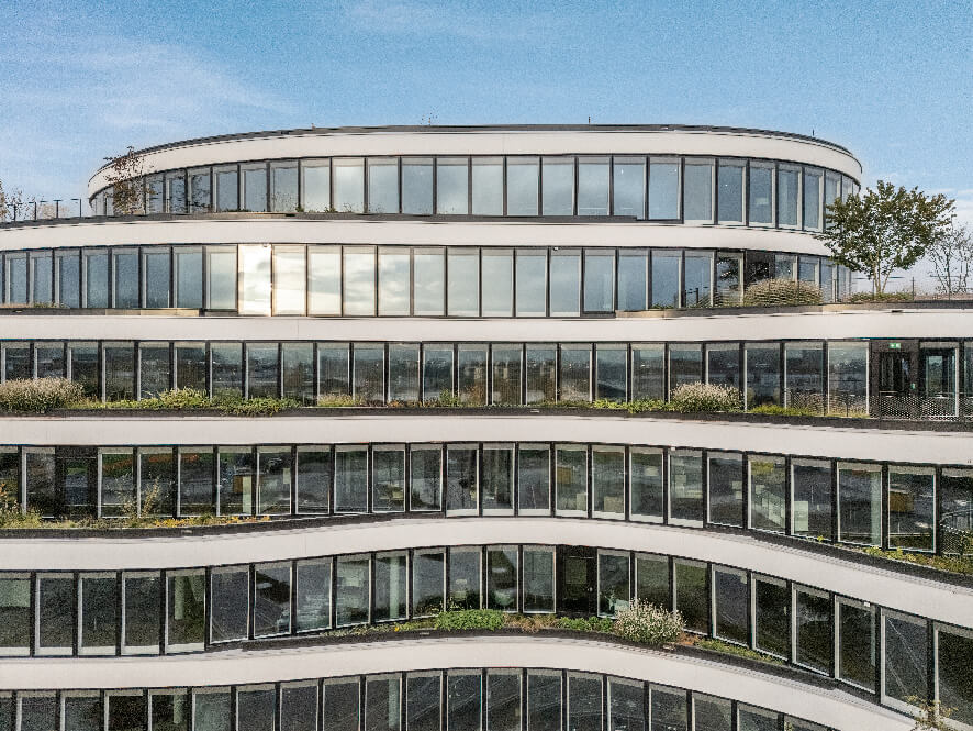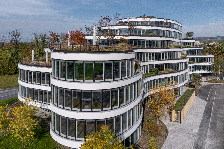 The Greenery building, part of the HQ for global private equity firm Partners Group, features a stunning curved Closed Cavity Façade (CCF).