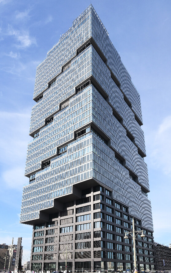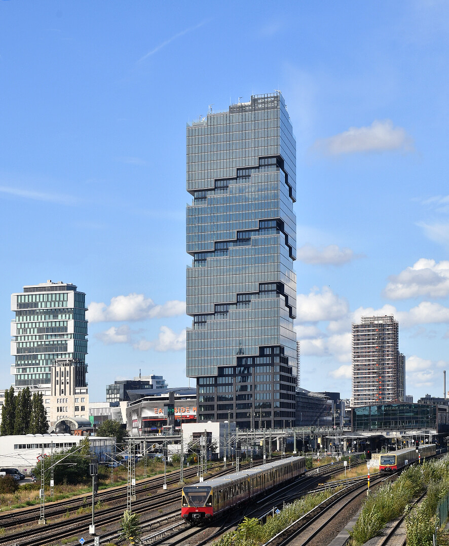 EDGE East Side 高142米,係德國最健康嘅摩天大樓。呢座玻璃辦公室塔驕傲噉企喺華沙大街,醒目嘅正面好快就成為柏林天際線嘅標誌。